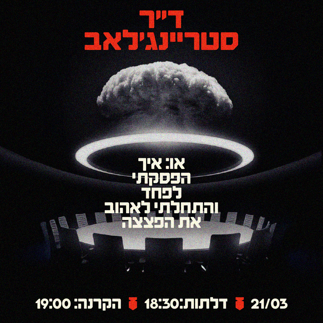 הקרנת מוצ”ש בבית רדיקל של ד”ר סטריינג’לאב, או: איך הפסקנו לפחד והתחלנו לאהוב את הפצצה~