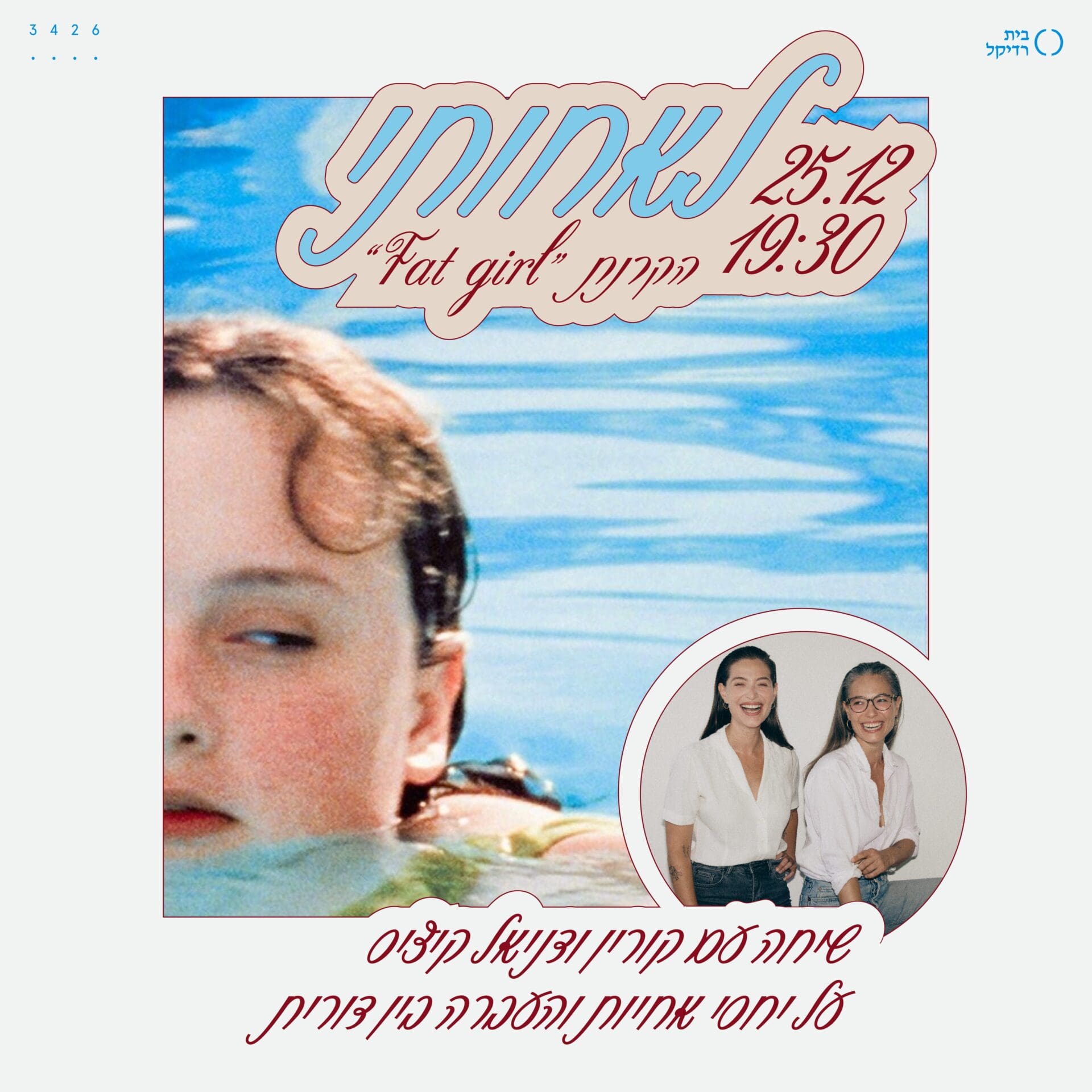 צ׳יק פליק ובית רדיקל גאים.ות להציג: ״Fat Girl״ (לאחותי) – סרטה הפרובוקטיבי של קתרין ברייה מספר את סיפורן של זוג אחיות, אלנה ואנאיס, בחופשת קיץ משפחתית. כאשר סטודנט איטלקי מתעניין באלנה, האחות הגדולה, אנאיס הופכת לעדה לאהבה הראשונה של אחותה. סרט נוקב על גבולות, גוף, ולחצים חברתיים – וקשר של אחיות.